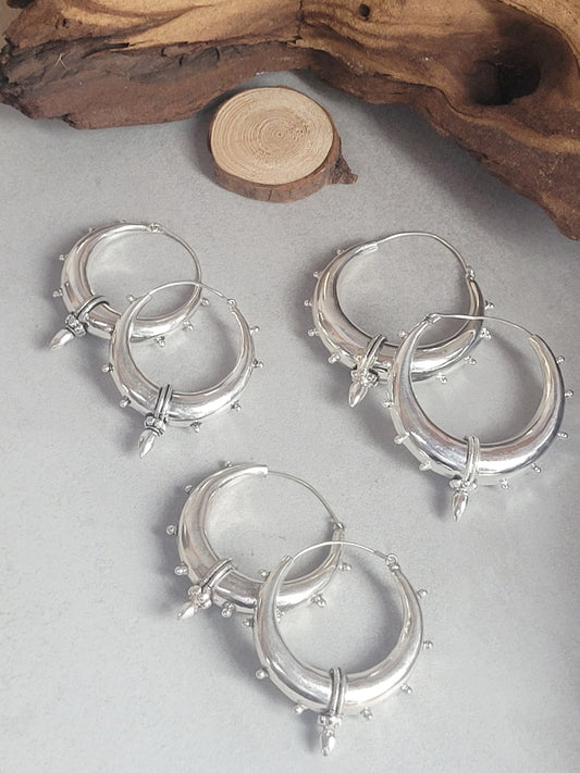 Silver hoops / Thick hoops / Ethnic jewellery / Boho style / Festival / Gift / Small hoops / Large hoops / Detailed